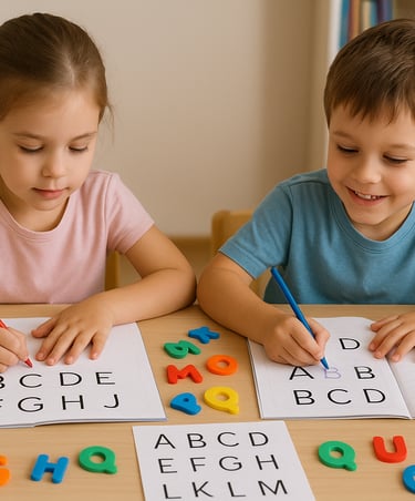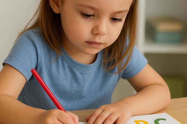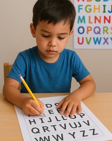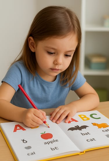 As letras ganham vida quando a criança aprende brincando. Com prática e atenção, ela desenvolve habilidades essenciais para a leitura e a escrita, explorando o universo da linguagem com criatividade.